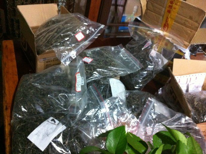 话说回来,今年云南茶山新景象,自春茶从三月初开始刚上市,很多做云南普洱茶生意的老板们已上云南,云集各个茶山村寨。就西双版纳茶区而言,只有台地、小树茶部分采摘;而大树、古树尚末发芽。当然这时对茶厂做量的,收料是首选作拼配之用,成本价格低。可有部分茶商或其他人,却把台地、小树作古树,大量在收购之中!茶农也有经营[理念]了,当有零星的大树、古树采摘时,大量混入小树台地茶,作大树茶卖!由于各山上的茶求大于供,茶商也不管茶质如何,你争我抢,见茶就收。故茶价一升再升,毛茶没有在家[过夜]的茶。茶农来电话说:茶山大混战!似打仗啊。
