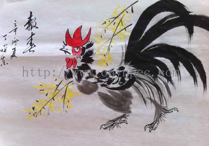 云南普洱茶信息网推荐·茶人书画家·耕田之子·丁焕东先生作品·雄鸡图·斗方