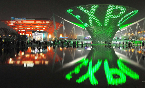 世博园“阳光谷”与中国馆的灯光交相辉映 新华社