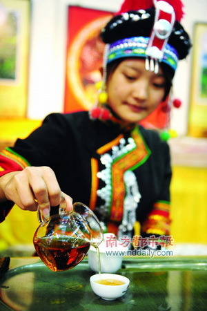 昨日上午,第三届深圳茶博会在会展中心开幕,现场展示了云南普洱茶、武夷大红袍、福鼎白茶等近20种中外名茶精品,展会规模、参展企业数量创了历史新高。其中最古老也是最贵的一款茶年龄达到300年,却因价格太昂贵被现场观众连称“不敢喝”。