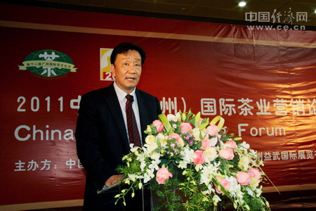 中国茶叶流通协会常务副会长、全国茶叶标准化技术委员会副主任王庆,在“2011中国(广州)国际茶叶营销论坛”上做主题演讲。