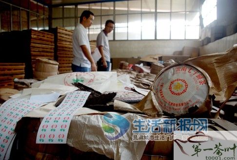 该家茶业公司假冒最多的为云南勐海茶厂、云南中茶茶业有限公司生产的各种品牌的云南普洱茶。接到警方通知后两家公司的代表都赶到现场进行清点。云南勐海茶厂实验室主任肖先生介绍,茶叶放在水泥地上发酵,其大肠杆菌的检测肯定不达标,对身体是有很大危害的。