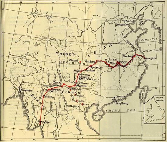 Morrison乘船从上海起行经过中国内地四川的重庆、宜宾、又经云南的昭通、昆明,最后到达缅甸首都仰光,书中考察了大量的中国内地风土人情,作者报着侥幸的态度看看能不能从中找到点历史上有关云南普洱茶的蛛丝马迹。果然,作者的茶缘一直不错,在书中发现不少关于云南普洱茶和马帮的片段。