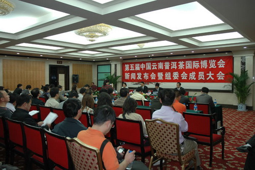第五届中国云南普洱茶国际博览交易会新闻发布会暨组委会成员大会于4月7日在昆明国际会展中心举行