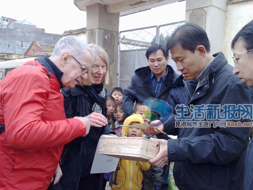 昨日,昆明市人民政府副市长陈勇,代表昆明市政府和全市人民感谢瑞士苏黎世两位专家为昆明作出的贡献。据悉,维尔纳·斯杜茨、玛格丽特·克里斯腾森两人,从2008年至今,为牵头修缮保护昆明市的古建筑——化城穿心阁,多次往返于两国之间,募集资金近30万元。陈勇将带来的礼品云南普洱茶赠送给了两位专家(上图)。两位专家也向陈副市长回赠了一份纪念品。