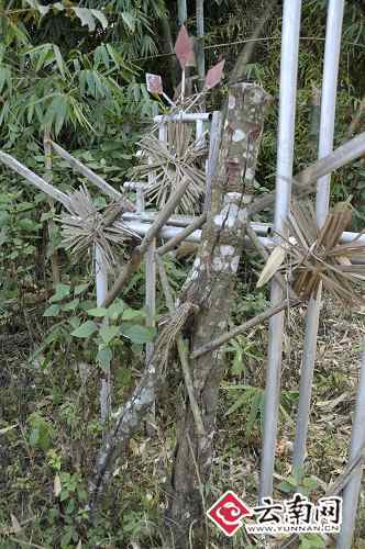 尽管这样,我还是注意到茶王旁边留下了一个两人才能围抱过来的大根桩,这显然是棵苍天古树,只可惜不知何因被砍了。我问开才,开才说,他很小的时候那棵树就没了。他这一回答使我明白两道理:一是茶王原本受一苍天大树庇护,二是大树被砍,茶王失去了他的老伙伴,被迫独自一人承担时下这世间的风风雨雨,好在茶王根须健硕,似暂无《枯树赋》中“此树婆娑,生意尽矣”的危态。其实,威胁着茶王的似乎还不仅是茶王“老伙伴”的丧失,而是一拔又一拔的茶商的算计。老柳告诉我,有茶商曾称出价15万元要买下茶王,满以为会得逞,不想被开才一口回绝,茶商加价后还是被回绝,那茶商不解其意,开才告诉他:他是茶王,卖他就是卖祖宗!这话一出,茶商终于死了心,不敢再提买之字。令开才烦恼的事不多,但有一件还是让开才有点生气并立即采取行动,在2007年茶叶市场火暴之时,有人趁他们不在的时候偷偷爬上茶王树偷茶老叶子(黄片)。开才认为这很不好,一是对茶王不敬,二是会危及茶王的健康,于是用铁丝网将其保护起来,并远远地盖了一间小房子,白天让妻儿轮流上班,给茶王当起“警卫”,给起岗来,我问开才这样做累不累,开才说:开始有点不习惯,但想到姑娘寨那棵死去的茶王,他就放不下那颗心。他坚定地说:茶王也成为他家庭是重要的一位“老人”我不能让他受到不公正的待遇,更不能让他受那怕一点伤!