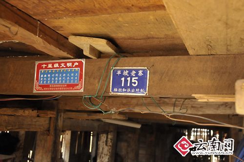 从云南勐海县城开行15分钟之后,我们的车便沿着陡峭较窄的水泥路盘山而上,径直往开才家驶去。由于山路较窄,沿路的几辆摩托车远远地停在路边,让我们上去,礼让之情溢于言表,山村纯朴的民风扑面而来。三绕两绕之后,车子便来到了“开才”的家门口。看来看去,开才家并没有想象中的“茶王之家”的威仪,房子是那种勐海县随处开见的民居。相反的是附近几家房子已翻盖为砖混结构,为纪念新居落成,村民们别具心裁地用墙砖拼成“”2008.12.25等字样,安居乐业的心态跃然房顶上。