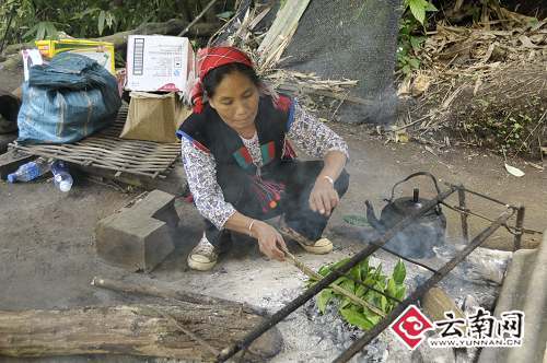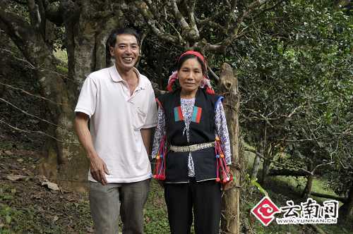 与我随行的县扶贫办副主任柳天祥与我们的茶王之家的主人——开才显然是老朋友了。一路人,他告诉我说,开才属龙之人,原住在云南勐海县格朗和(僾伲语,福气大的地方)格朗和乡的半坡老寨,后来搬到了现在的竹林村。开才只上过小学四年级,有一对儿女。女儿排行第一,现已结婚,名叫才娘。老二是个儿子,开才给他取名才大,现正是家里的得力助手。帮着爹妈照看那棵有800年树龄、中国最早人工栽培的茶王树的茶园。