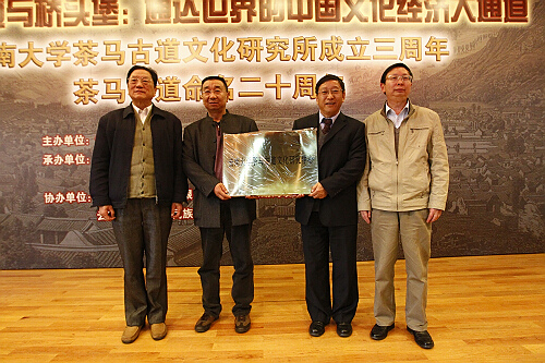 在开幕式上,云南大学党委书记刘绍怀教授致辞,他回顾了云南大学的建校历史和现状,并从云南大学悠久的治学传统出发,讲述了“茶马古道”这一学术概念在云南大学诞生,有其必然性。刘绍怀说,云南大学以全面履行人才培养、科学研究和社会服务为使命,并重视新的研究方法、研究视野和服务社会的内容。1990年,学校中文系的一批青年教师在云南大学中国西南边疆少数民族研究中心和中文系的支持下,完成了对茶马古道的第一次学术考察,并最终获得学术评定,也由此引发了后续的茶马古道研究热潮,使茶马古道逐渐成为中国西南研究的重要载体,进一步开拓了西南史地研究的视野。