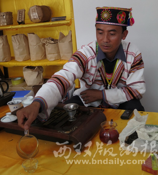 图为:非物质文化传承人——攸乐祭茶师切木拉