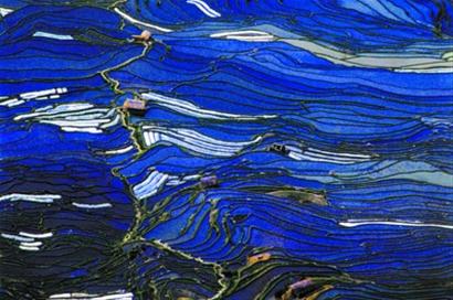 冯学敏镜头聚焦最多的还是广袤的中国西部。1970年,他以知青的身份,远离父母来到云南;回到上海、后去日本从事摄影职业,思乡情感日渐浓重,策划拍摄了故乡中曾经影响过他成长的人文主题:《绍兴・酒的故乡》《长白山・参的故乡》《景德镇・瓷的故乡》……一处一个主题,唯独云南拍摄了两个主题:《云南・普洱茶的故乡》和《云南・稻作故乡》。不仅因为在日本,人们对中国云南的认识是从云南普洱茶开始的,同样以稻米为主食的日本对稻米也有特别的珍爱之情;更是因为,在他记忆中最美的构图始终是云南,丽江、大理、香格里拉、西双版纳……特别是哈尼梯田,他往返14次,历时整5年,跑遍了云南南部梯田,拍摄了不同季节、时段的梯田和耕作者,宏大的景观以及它背后的人文背景,都在这次影展上一一呈现。