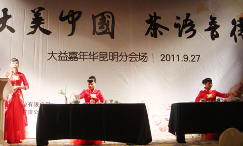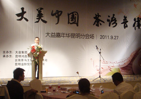 2011年9月27日,“发现中国茶道之美•2011大益嘉年华”昆明分会场主题茶会在昆明饭店隆重举办,茶会以“大美中国•茶语音律”为主题,由昆明大益茶授权经销商鸿昌茶庄、茶马王茶业、溢醇贸易联合主办,大益集团对其给予全力支持。云南省著名音乐家、云南省音乐家协会会员、云南省视听音乐文化创始人杨奎峰老师受邀担任茶会主讲嘉宾。
