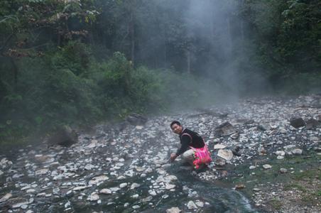 △付腊温泉四面环山,林荫蔽日,混合水温适合洗浴。