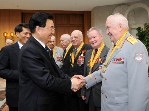 胡锦涛会见参加中国人民抗日战争的俄罗斯老战士代表