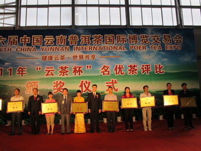 2011年4月22日上午,第六届中国云南普洱茶国际博览交易会在昆明开幕,中国国内外200多家企业、数千人参展,台湾云南普洱茶投资考察团也首次参加此次中国云南普洱茶国际博览交易会。在开幕式中,组委会评选出了2011年“云茶杯”名茶金银铜奖。