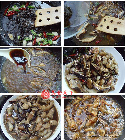 辅料:香菇、青红椒、泡发芸豆、普洱茶。