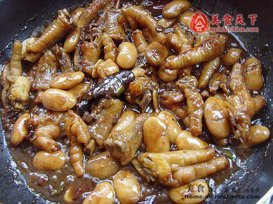 12、取出鸡爪倒入锅中,中火收干蒸制时的汤汁即可。