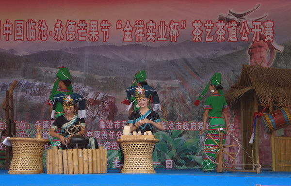有四季“春城”之美誉的云南永德县,其竹筒雷响茶茶艺表演使人魂牵梦萦,当地俐侎人拿出芽叶肥嫩、粗壮显毫的青毛茶、红茶、云南普洱茶等山寨中的当家品种,用传统沿袭的温水、破竹、打茶、洗具、雷响、苦渡、敬茶、收具8道工序,泡制出香而不焦,回味悠长,饱含着俐侎人浓浓情意,深深祝福的“雷响茶”。