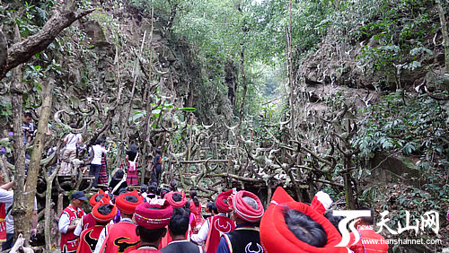 举目四望,就会在龙摩爷圣地赫然发现在峡谷、岩壁、树枝、草丛、崖洞上高低错落的挂着三千多个牛头。这些被一代又一代的佤族人为祈求风调雨顺、消灾避邪而奉献给众神的牛头,有的年代久远,布满绿色苔藓,有的新挂不久,依然白骨森森。站在祭祀台上,几千双空洞洞的牛眼从不同的角度与你对视,让人毛骨悚然,不寒而栗,同时也被它的肃穆庄严而深深震撼。