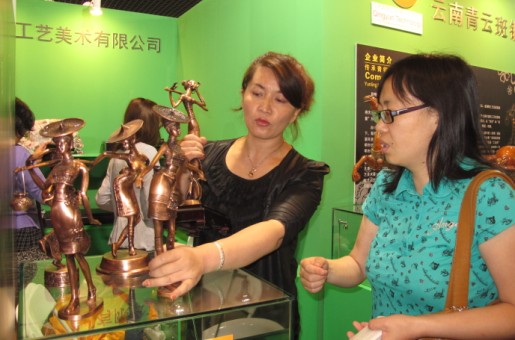 记者来到独具特色的云南展厅,绿色的植物,鲜艳的花朵,向人们展示着云南昆明四季如春的景色。“传承青铜工艺·展示云岭风情”几个大字映入眼帘,参观者将斑铜展台团团围住,参观欣赏,洽谈业务,“悬崖孔雀”、“傣族少女”都备受参观者青睐。在云南珠宝展台,参观者络绎不绝,在参观云南珠宝、洽谈业务的同时了解云南的翡翠文化,感受着天地孕育翡翠的神奇与震撼,以及与中国传统玉文化的相契合的精神内涵。在云南普洱茶的展台,人们品尝着来自云南的千年古茶树云南普洱茶、体会着云南的神奇美丽与丰富云南普洱茶的悠久历史,一位来自北京东城区的张先生说:“来到京交会能品尝到最好的云南普洱茶,在云南展厅品饮云南普洱茶仿佛能感受到一队队的马帮沿着青石铺就的茶马互市的千年古道,踏着夕阳而来,云南古镇留下来的一条条古道见证了云南普洱茶悠久历史,云南实在是一个值得铭记的地方。”在云南民间手工艺品展台人头攒动,这里展示的云南手工艺品颇受参观者欢迎,纷纷购买,不少来自国外的朋友来到这里更是驻足观看,不愿离去。一个个做工精致,价廉物美的云南民间工艺品吸引了国内外众多参观者。