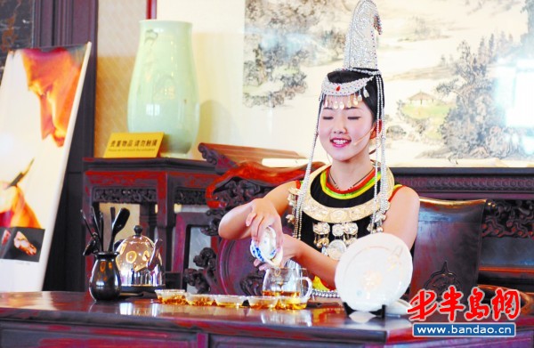 当日上午9时,第十二届中国云南普洱茶节青岛分会场第二日活动惊艳开场。来自云南的茶艺师、佤族姑娘娜侈身着民族盛装,纤纤素手在杯盏间流转,一杯杯沁人心脾的正宗云南普洱茶被送到了所有宾客手中,细细品尝,香气四溢,和着葫芦丝演奏的美妙乐曲、大屏幕上对云南当地风光的展示,到场嘉宾仿佛远离了喧嚣的都市,从美丽的岛城一下子转换场景来到七彩云南。