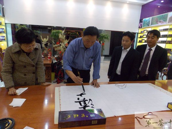 云南省老领导、云南普洱茶协会会长张宝三先生现场挥毫泼墨。