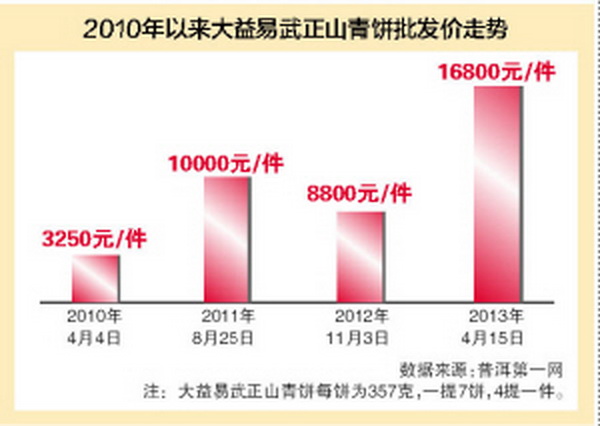 此外,根据中国茶叶流通协会发布的《2013全国春茶产销形势分析报告》显示,近几年来,云南连续干旱,导致云南古茶树长出的芽叶越来越少,去年云南普洱茶的产量下降了40%。王庆说,如今云南普洱茶市场的供不应求也是导致价格一路走高的主要原因。