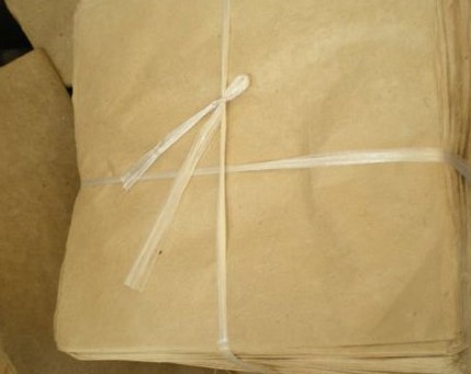 在云南西双版纳地区特有的一种植物,当地的人叫“马三”,在使用过程中,得把外面的皮全部剥干净(只留中间白白那一层),晒干,然后,经过二至三小时沸水煮,再用榔头把煮好的树皮捣得很碎,做成纸浆。再经过加工,印上各大品牌的印章、标志后,就成了我们包云南普洱茶饼茶的茶叶纸了。