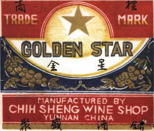 云南聚盛酒铺的“金星”酒商标,出品年代为1946年