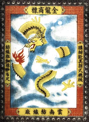 昆明老字号云南纺织厂1941年的“金龙商标”