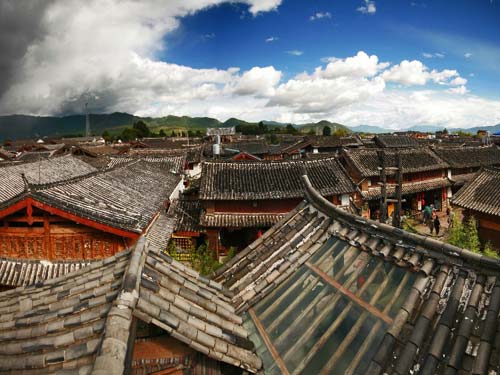 纳西文化:青瓦白墙,人字屋架,既有“四合五天井”、“三坊一照壁”的典型院落,又有依山就势的变异和不规则体,闲适惬意,并不因小而牺牲人文情调。