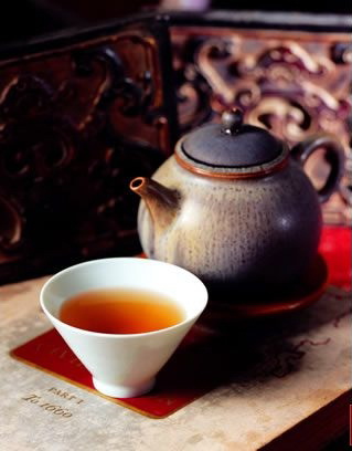 云南普洱茶是发酵茶,制成以后在常温下可以继续自然发酵,贮藏方便,据说越陈越香。云南普洱茶的特点是没有娇骄二气,形态朴实,平易近人,不骄不躁,不温不火,像个得道的高僧。好的茶喝到嘴里有一股特殊的陈香味,微微有点甜。说起云南普洱茶,往往让人联想到茶马古道。有时我突发奇想,发酵制茶的方法可能是早先外销的茶叶包装比较简单,在马背上驮着,传说被马的汗水浸湿,茶叶变质,被遗弃在一边。久而久之,人们偶尔尝试这些发酵过以后的茶叶觉得别有风味,其味更加醇厚,这才开始有意识地逐步制作云南普洱茶。也许这就是现在有人喝云南普洱茶时会说有些汗酸臭的原因吧!
