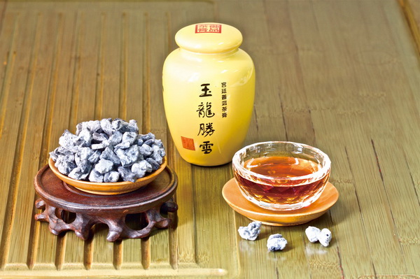 茶是皇家的主要饮品之一,同时也能起到很好的保健养生作用。乾隆皇帝就是一位茶叶爱好者,为喝到最好的茶,他甚至发明了一个秤,称不同水的重量,选取最轻的水泡茶,足见他对茶的考究已经到了无以复加的地步。他关于茶的诗很多,从这些诗中可发现,乾隆皇帝对云南的云南普洱茶也是情有独钟的。现在故宫博物院的藏品中,还遗留着云南古六大茶山进贡的云南普洱茶贡品。其中除了我们所熟知的云南普洱茶的砖茶、沱茶、团茶和金瓜茶外,还有一种被称为云南普洱茶膏的茶制品。现在仍保存在故宫的云南普洱茶膏,是清朝道光年间宫廷御茶房生产的,除少许碳化外,茶膏没有任何霉变。称奇的是,这个云南普洱茶膏在自然条件下被存放了100多年,不仅没有变质,且至今仍可以食用。