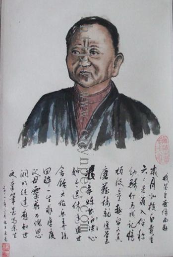 云南普洱茶信息网推荐·茶人书画家·杨玉峦先生作品·杨老师自画像·中堂·