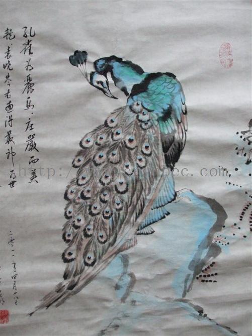云南普洱茶信息网推荐·茶人书画家·杨玉峦先生作品·孔雀图·中堂·