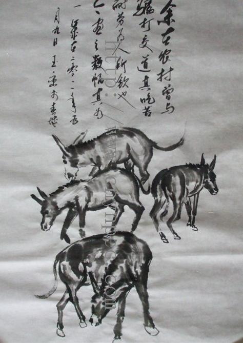 云南普洱茶信息网推荐·茶人书画家·杨玉峦先生作品·四驴图·中堂·
