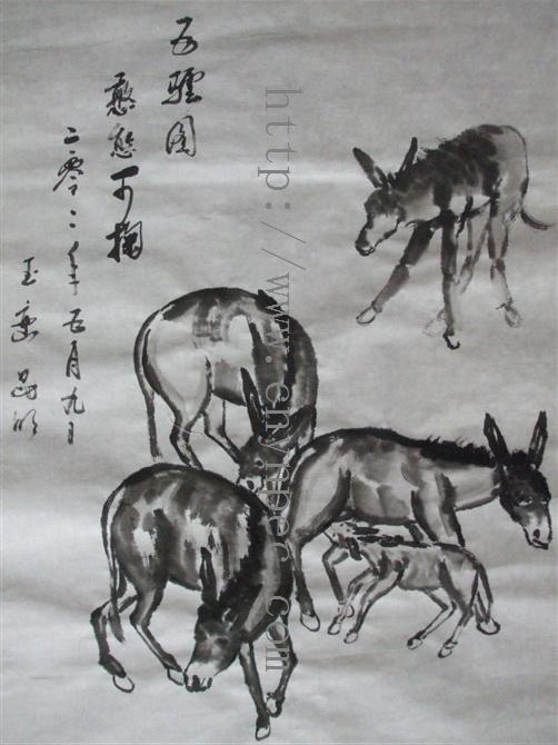 云南普洱茶信息网推荐·茶人书画家·杨玉峦先生作品·五驴图·中堂·