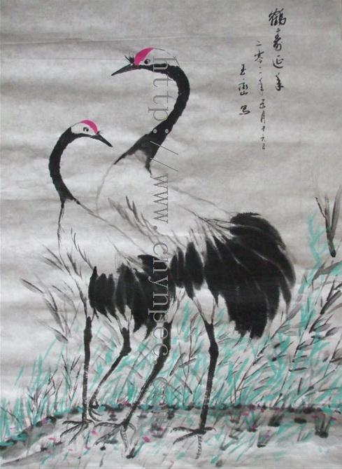 云南普洱茶信息网推荐·茶人书画家·杨玉峦先生作品·双鹤图·中堂·