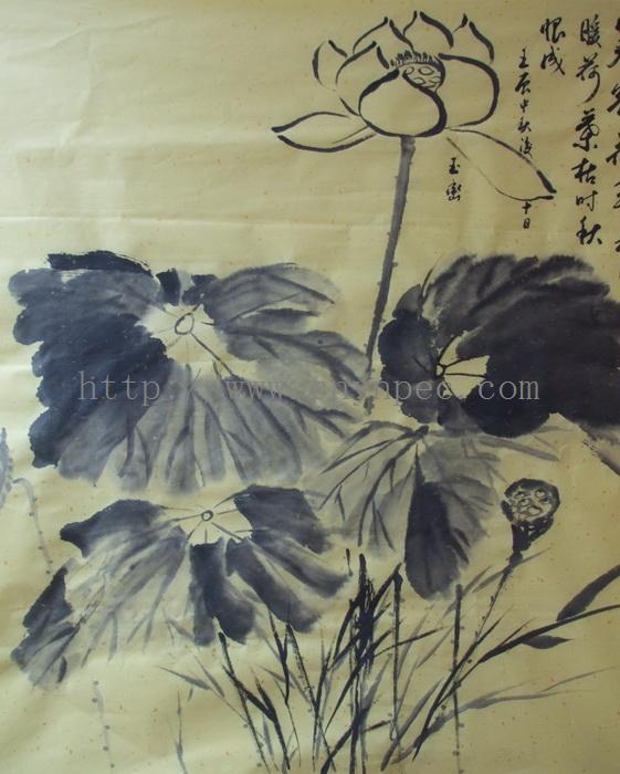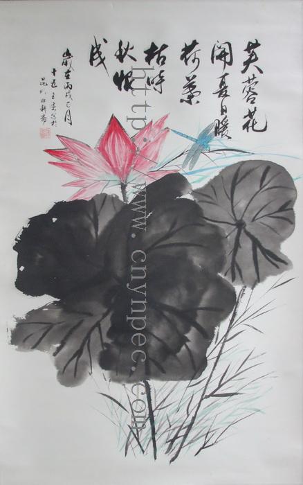 云南普洱茶信息网推荐·茶人书画家·杨玉峦先生作品·荷花图·中堂·