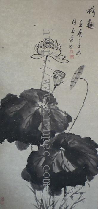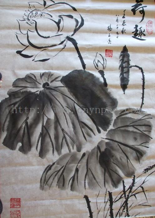 云南普洱茶信息网推荐·茶人书画家·杨玉峦先生作品·荷趣图·中堂·