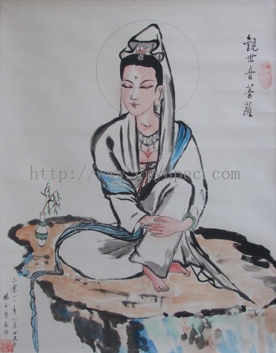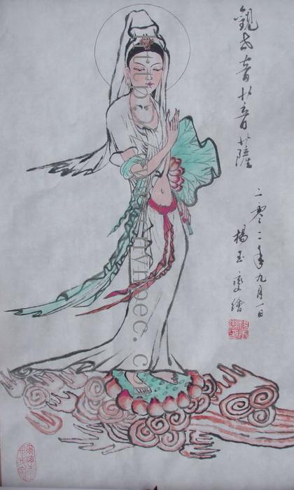 云南普洱茶信息网推荐·茶人书画家·杨玉峦先生作品·观音图·中堂·