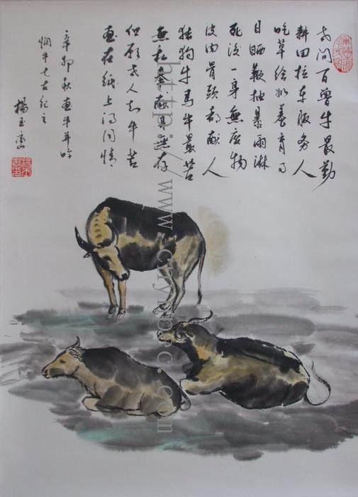 云南普洱茶信息网推荐·茶人书画家·杨玉峦先生作品·水牛图·中堂·