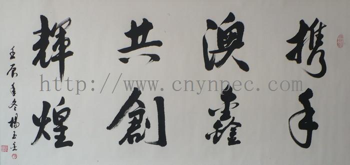 云南普洱茶信息网推荐·茶人书画家·杨玉峦先生作品·携手澳鑫·横幅·