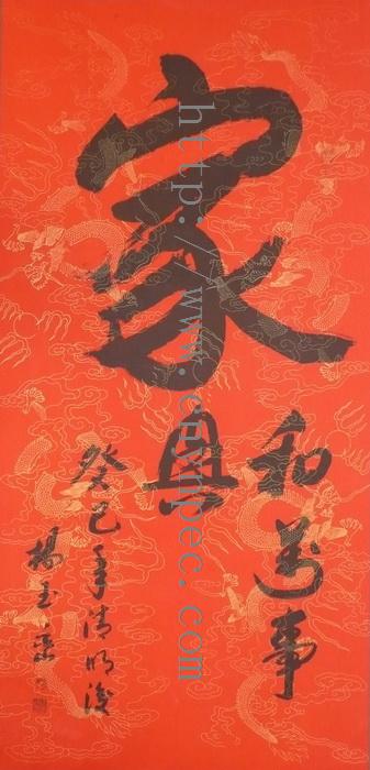 云南普洱茶信息网推荐·茶人书画家·杨玉峦先生作品·家和万事兴·中堂·