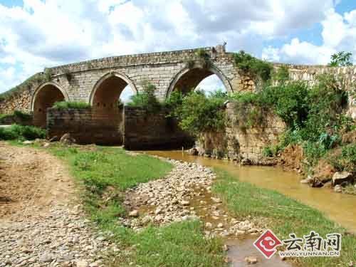 那么,这座桥何以称为“茶马古道上的三孔桥”?记者采访了个旧市博物馆馆长汤文忠。汤馆长告诉记者,在2000多年前,云南人就已在崇山峻岭中开辟出一条通往东南亚和印度的古老驿道。这条路在中国境内段由五尺道、灵关道和永昌道组合而成。五尺道从成都东南起,沿水路到宜宾,经昭通、曲靖、昆明到大理;灵关道由成都经邛崃、雅安、凉山和楚雄,与五尺道在大理汇合后一路往西,称为永昌道;永昌道出大理翻博南山,经保山、腾冲到缅甸、印度等地。在这条古道上,笮桥、栈道和马帮是云南各民族征服自然险阻的三大创造。此后,人们还发现,云南的南部,红河、文山等地有通往交趾(越南)的道路,由河口出境,到达出海口仅四五百公里,是云南最近的出海路线,暗合了茶马古道南道的一些路线。