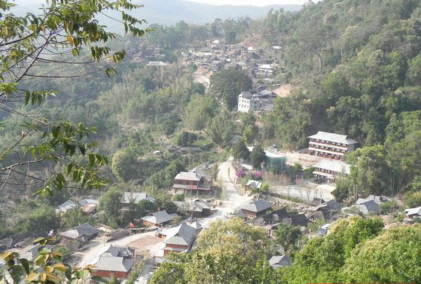 (上为芒景上寨,下为芒景下寨,3层楼为童蕾希望小学)