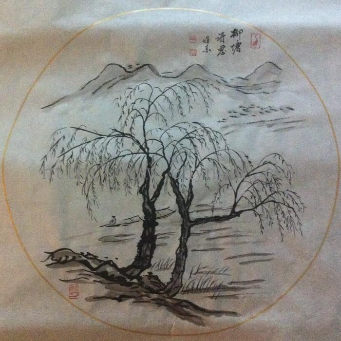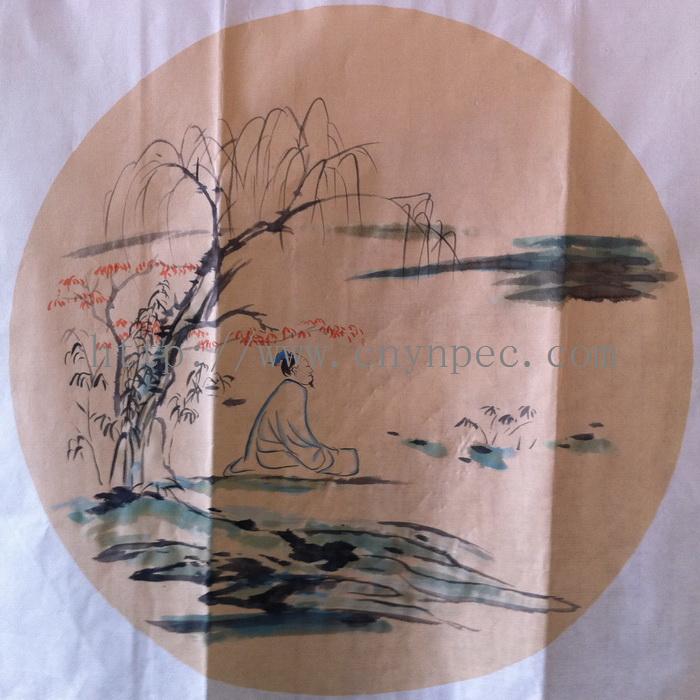 云南普洱茶信息网推荐·茶人书画家·耕田之子·丁焕东先生作品·山水图·圆形·斗方10