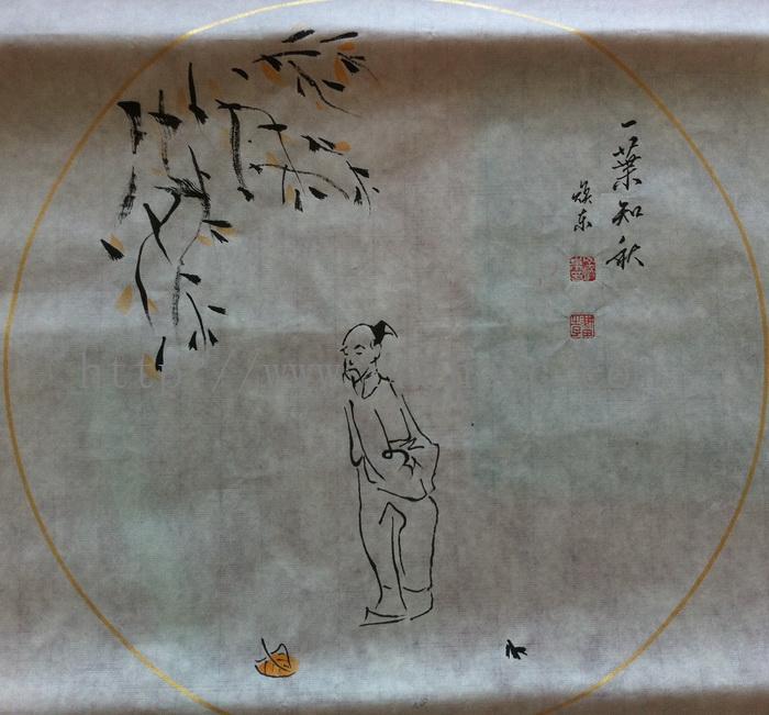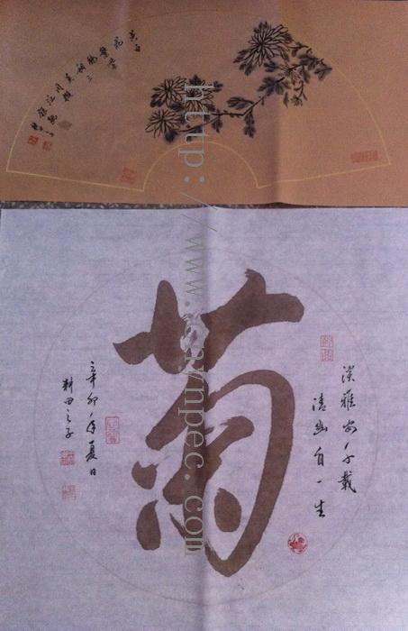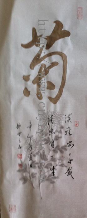 云南普洱茶信息网推荐·茶人书画家·耕田之子·丁焕东先生作品·扇圆菊套图·中堂