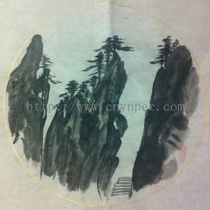 云南普洱茶信息网推荐·茶人书画家·耕田之子·丁焕东先生作品·山水图·圆形·斗方4