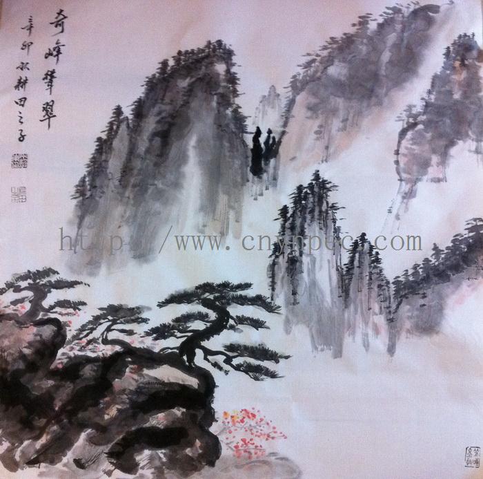 云南普洱茶信息网推荐·茶人书画家·耕田之子·丁焕东先生作品·山水图·斗方1